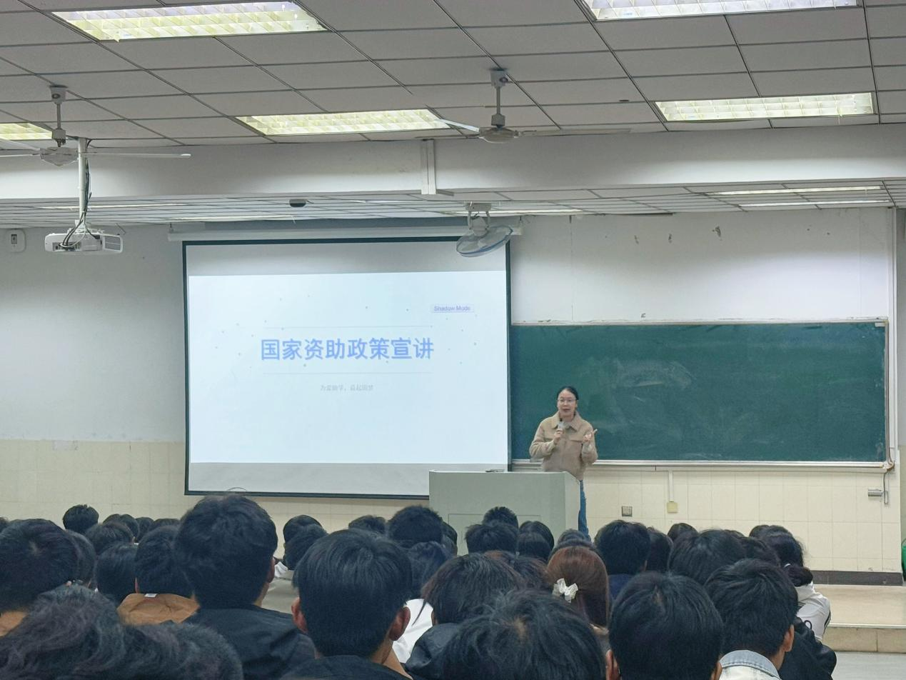 为助力学子无忧求学,台湾av 于10月22日在秀山校区阶教201举办“国家资助政策宣讲会”,由新生辅导员任静主讲,全体2025级新生参加。