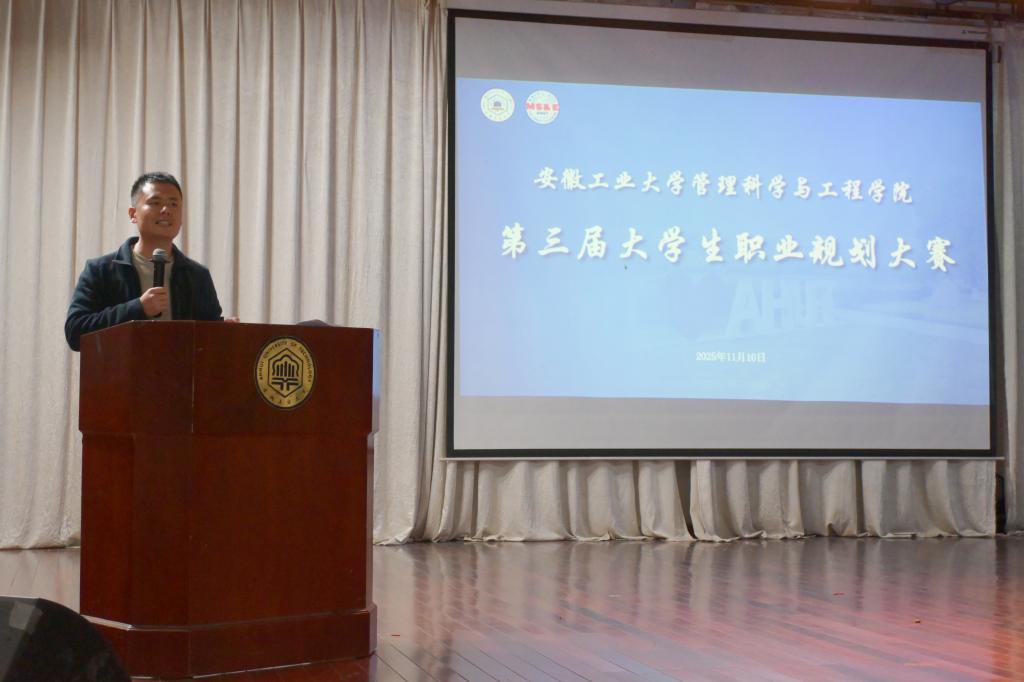 现场赛分为“成长赛道”和“就业赛道”两个赛道,通过主题陈述、评委问答相结合的形式,选手们借助PPT展示与生涯报告、简历展示,从自我认知、行业环境分析、职业目标设定、就业能力储备、实践经历复盘及未来行动规划等维度,全面呈现个人的职业发展思路与专业素养。王元云在总结点评中充分肯定了选手们的表现,并强调职业规划应紧密结合专业背景,注重将个人经历与职业目标有效关联,增强规划的科学性、针对性与可行性。