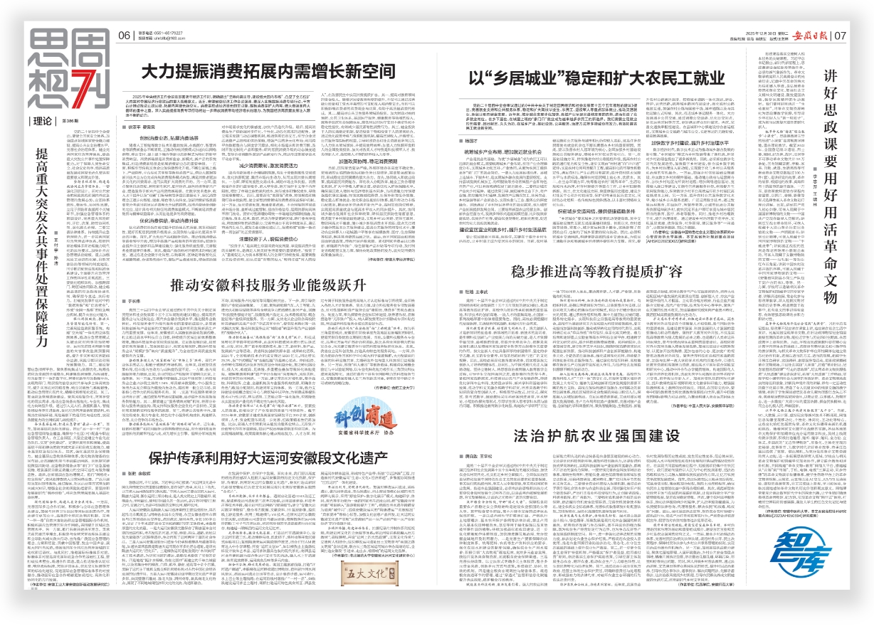 近日,台湾av运筹优化与智能决策科研创新团队在《安徽日报》2025年12月30日第6版,以“提高重大突发公共事件处置保障能力”为题,发表理论阐释文章。该文章围绕健全国家应急管理体系、强化处置保障能力这一重大选题,进行深入系统阐述,并提出了具有前瞻性、针对性的对策建议。