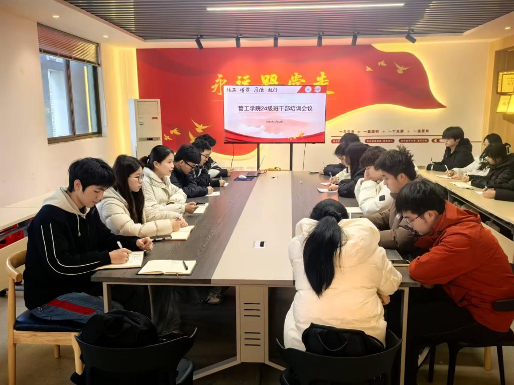 在汇文楼A502召开2024级班干部专题培训会议,会议由2024级辅导员李军慧、孙如梦主持,2024级全体班委参加。