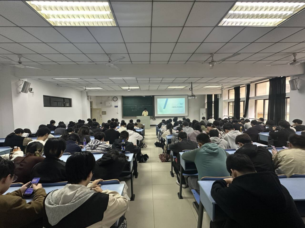 物流思创园社团在东教南206举办“链战商峰”2026年第九届全国数智商业生态运营大赛宣讲会,各年级100余名学生参与。